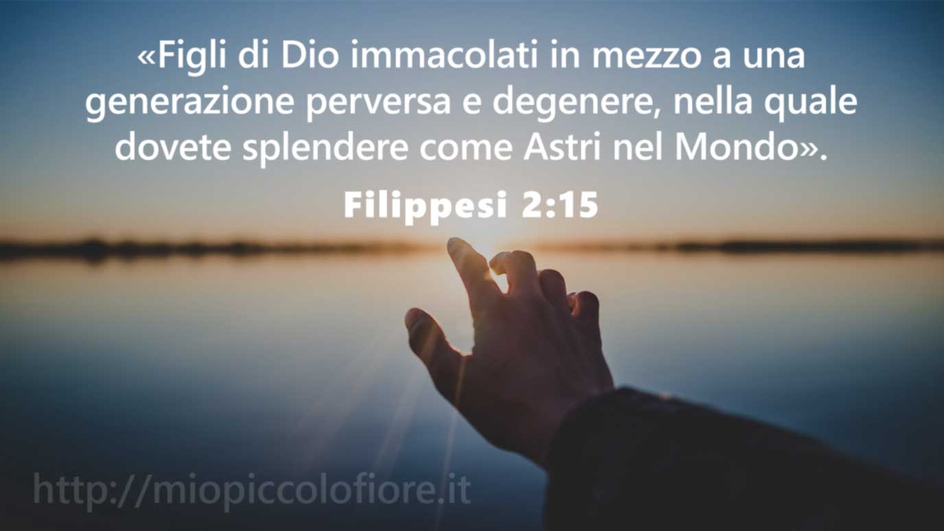 «Perché siate irreprensibili e semplici, figli di Dio immacolati in mezzo a una generazione perversa e degenere, nella quale dovete splendere come Astri nel Mondo».